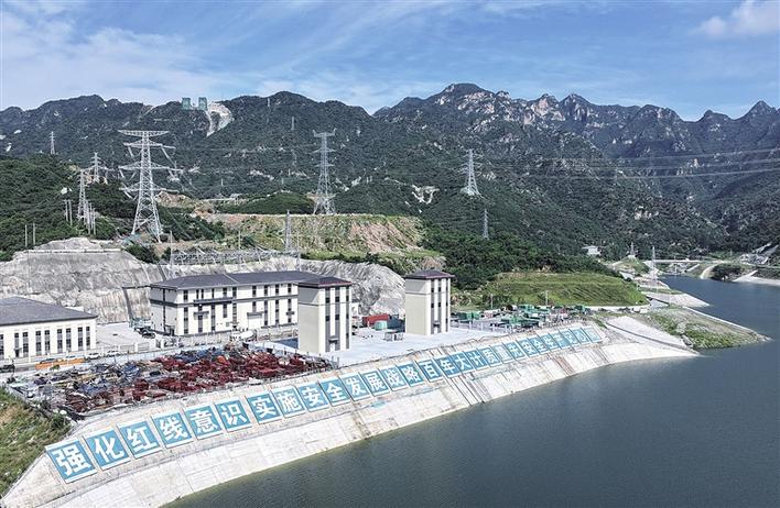 近日,河北重点项目——设计装机容量120万千瓦的易县抽水蓄能电站配套工程500千伏特高压送出线路并网投运。据国网河北省电力有限公司介绍,该能源送出线路全长49.937公里,将为易县抽水蓄能电站竣工投运后发挥调峰、填谷、调频、调相等作用提供支撑,助力太行山地区的新能源消纳和保障电网安全稳定运行。图为易县抽水蓄能电站下水库附近的电站送出线路。(新华社发)
